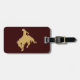 This luggage tag shows what everyone knows about Wyoming. Horses buck and cowboys ride 'em! It features a gold cowboy and bucking horse silhouette image on a dark brown background. The other side has your customized text in light gold on the same dark brown background. *This design uses image © Graphics Factory.com*
