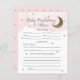 This cute baby predictions and advice card features a white background with faux gold glitter stars and the crescent moon. The reverse side features faux gold glitter star patterns on a light pink background. Change the background colour and personalize for your needs. You can find more matching products at my store.
