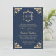 Gold Crest Monogram QR Code Navy Blue Wedding Invitation
