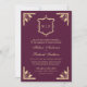Gold Crest Monogram QR Code Plum Purple Wedding Invitation