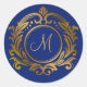 Gold Crest with Monogram Initial on Blue Classic Round Sticker