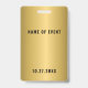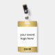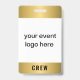Customize this faux gold metallic volunteer event crew staff badge with your logo. If your logo is square, it will fill up the white space entirely. If your logo is not square, it will show on a gold background. The back of this badge can be personalized with the event name and date or year, or you can delete both to have an all gold back. This simple, minimalist crew staff badge is ideal for special events, festivals, concerts and conventions.