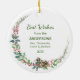 Here's a pretty Christmas ornament that is appropriate as a family gift to anyone. The front features an elegant gold Christian cross amid a beautiful pine one, floral, and red berry bouquet. Green curved text at one side says "Blessed Christmas". The back has a wreath with pine cones and text fields for your own message. Make it say whatever you'd like!