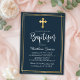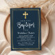 Gold Cross Modern Script Navy Blue Boy Baptism Invitation