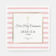 Elegant pink stripe First Holy Communion paper napkin featuring a gold cross with an elegant faux gold foil border that frames your special celebration event details set in modern typography. Designed by Thisisnotme©