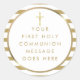 Gold Cross Stripe First Holy Communion Message Classic Round Sticker