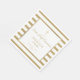 Elegant gold and white striped First Holy Communion paper napkin featuring a gold cross with a chic faux gold foil border that frames the celebration event details set in modern text. Personalize with your child's name and special date. Designed by Thisisnotme©