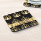 Gold crown pattern on black coaster