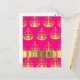 Gold crowns on hot pink postcard