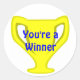 Fun teacher's reward sticker done in a round shape, with a white background and a yellow gold cup. Blue text, across the cup, reads You're a Winner. Customize the text to read anything you want. Great for any age school child.