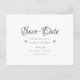 This chic save the date card features gold cupids either side of your names and your save the date details set in classic elegant typography. The reverse has additional save the date details, including your wedding website, with your return address and space for your recipient's address.