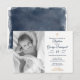 Elegant Baptism event invitation in navy blue with gold floral details. It is personalized with your custom photo. Find matching products in our shop or contact us.