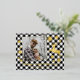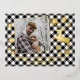 Unique, classy, trendy, pretty and decorative seasonal Christmas Holiday and Happy New Year greetings card. With room to customize or personalize with a photo, family name or names, and text of your choice. Cute golden snowflakes pattern and jumping deer design, on a traditional white and black coloured Buffalo Lumberjack chequered plaid background. And a customizable season greeting poem on the backside of the card, including your return address, city, zipcode and state.
