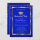 Gold glitter graduation cap, and gold diamonds on a royal blue background.