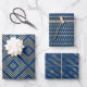 These gift wrap sheets each have a distinct separate pattern formed from shiny gold dots. Each pattern is placed on a background of royal blue. Elegant for many occasions, but especially so during the Christmas Season.