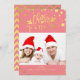 Gold Faux Foil Polka Dots Cheers to A New Year Calligraphy Typography Script with Gold Chevron Stripes Holiday Blessing Family Photo Card.