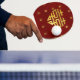 Gold Double Happiness Symbol in heart shape Ping Pong Paddle