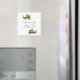 It was a bit smaller than expected, but I was too excited to check dimensions. The product itself send well printed though the grey text is a bit paint. Magnet worked perfectly on my fridge.
