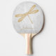 Enjoy a game of ping pong with a paddle all your own with a Gold Dragonfly Personalized Ping Pong Paddle. Paddle design features a colourful dragonfly, a soft white leafy vine against a light grey grunge damask background with an area to personalize with your name. Additional gift items available with this design as well as a variety of colours.