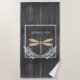 Enjoy your day at the beach or poolside with a Gold Dragonfly Rustic Personalized Beach Towel. Towel design features a vibrant dragonfly adorned with delicate foliage against a dark grey rustic wooden background. Additional gift items available with this design as well as a variety of colours.