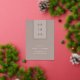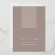 A simple and elegant save the date design for modern couples, featuring a gold foil geometric element bearing your wedding date against a tone on tone stone greige background. Personalize with your names, wedding location, and website or additional details at the bottom.