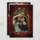 Gold dust against festive cranberry red creates an outstanding Merry Christmas holiday with a swirling handwritten calligraphy script. Easily replace your family details, including 3 pictures to make it your own.