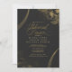 Gold flower and leaf outlines bordered by creative geometric line accents are paired with beautiful handwritten script text and sprinkled with gold dust to form the creative pieces in this elegant wedding suite. This wedding rehearsal dinner invitation features the above design elements and is easy to customize using the provided template to add all your event details. Search ID835 to see other pieces in this suite.