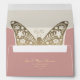 Simple, elegant, modern dusty rose wedding 5x7 envelope with adorable unique gold butterfly - symbol of spiritual rebirth, hope, and life, return address and monogram at the top back.