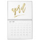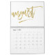 It's calendar 20xx template with gold foil effect (faux, look like) script written months. It measures 11 inches by 8.5 inches (medium size) with silver wire binding (other wire binding colour options are white, black, blue, red, green or gold). Numbers are printed as classic grid, holidays are not printed, but you can add them too. It's twelve months calendars and it starts with January and ends with December. You can get smaller (7 inches by 5.5 inches) or larger (14.25 inches by 11 inches) calendar too.