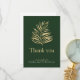 Express your gratitude with a refined wedding thank you card that features a stunning gold palm leaf design set against a deep green backdrop. This card includes a space to showcase a cherished photo from your special day and allows for personalized messages and names, making it a heartfelt memento for your guests. The luxurious touch creates an elegant keepsake to honour the support and love shared on your celebration. Please note the gold colour is printed.