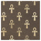 Metallic Gold Egyptian Ankh on a dark brown background.