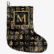 Gold Egyptian Hieroglyphics on Black Monogram Large Christmas Stocking