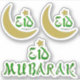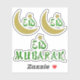 Eid Mubarak greeting lettering, typography in gold and green. Elegant and luxury moon and star, islamic symbols.