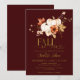 Gold Fall In Love Burgundy Pumpkin Bridal Shower Invitation. Rustic and elegant bridal shower invitation featuring hand painted watercolor white pumpkins, fall leaves and flowers with golden "fall in love" wording and burgundy red background. Please get in touch via chat if you need customization or matching items.