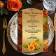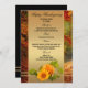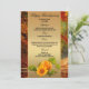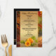 Elegant fall menu card featuring a pumpkin with sunflower on a gold stylized background with forest image. Beautiful for Thanksgiving or another autumn celebration.