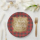 Gold Faux Foil Happy Holidays Buffalo Plaid Paper Plate