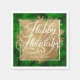 Gold Faux Foil Happy Holidays on Green Watercolor Napkin