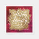 Gold Faux Foil Happy Holidays on Red Watercolor Napkin