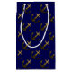 Gold faux sparkles Anchor pattern navy Monogram Small Gift Bag