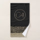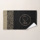A three tone sleek design created with a black backdrop for contrast and little gold feathers as the second layer and the third is a glittery gold border where on top you can personalize it with a letter or logo to make it uniquely your own. Stylish elegant vibes