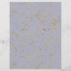 Features faux gold foil flecks and marks on a neutral/blue background design.