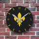 Add a royal touch to your home or office with this black wall clock with a Gold Fleur de Lis in the centre! It also makes an elegant gift!