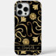 Gold Floral Damask Sunflower Classy Black Folk Art Case-Mate iPhone Case