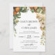 Pretty, elegant, modern and bohemian wedding invitation for your special occasion! Watercolor leaf foliage border in dark and light green leaves, with nature orange fruit and miniature flowers frames the top of your wedding celebration details. Your names are featured in modern font at the top, and reverse card to reveal a green leaf foliage pattern at the back. Customize your wedding details, date, venue and more at the front.
