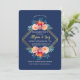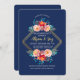 A beautiful, navy blue, watercolor invitation with a polygonal gold frame and clusters of pink and red flowers and foliage. (<a href='https://www.freepik.com/free-vector/watercolor-floral-frame-with-golden-polygonal-lines_2628011.htm'>Designed by Freepik</a>). <br/><br/>The card is easy to customize with your wording, font and font colour.<br/><br/>Not exactly what you're looking for? All our products can be custom designed to meet your needs at no extra charge.<br/><br/>Simply contact us at askcottonlamb@gmail.com.<br/><br/>Coordinating products available: Just ask us!