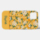 Fun white flowers and leaves on a yellow gold background, this cell phone case is personalized with your name on the bottom. **Select ANY STYLE and ANY MODEL to create for yourself or give as a gift. SEE MORE designs in our store.