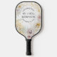 Gold Floral Personalized Wedding Pickleball Paddleo. All text and background colour is editable; customize the text for your event such as wedding, bridal shower or family reunion. Easy to customize. Get yours today!