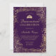 A modern, pretty chic and elegant faux gold glitter foil flowers and floral elements illustration with gold confetti Quinceañera birthday party invitation on an editable purple with a gold glitter crown tiara princess Perfect for a princess 15th birthday, perfect for her, the fashionista who loves modern pattern and glam