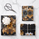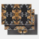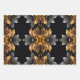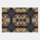 A stunning wrapping paper design featuring an exquisite display of gold and silver flowers set against a rich black background. The metallic flowers, with their intricate petals and leaves, shine brilliantly, creating a striking contrast with the deep black backdrop. The combination of gold and silver elements adds a sense of luxury and elegance, making the design both eye-catching and sophisticated. The dark background enhances the luminous quality of the metallic hues, allowing the flowers to stand out with a radiant, almost three-dimensional effect. This design is perfect for adding a touch of glamour and refinement to any special gift.