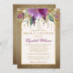 Gold Floral Sparkling Amethyst Bridal Shower Invitation